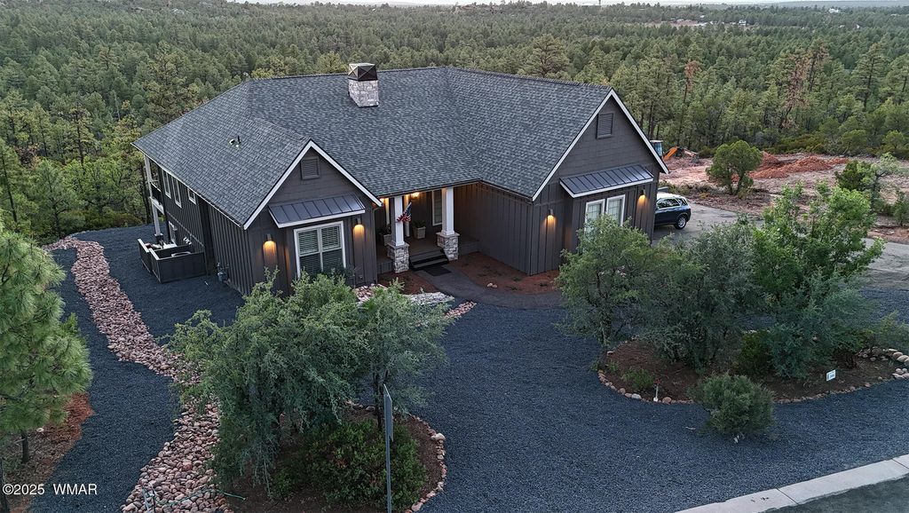 ***MOTIVATED SELLER*** Welcome to your luxurious mountain escape in the exclusive Sierra Pines community of Show Low, AZ. This brand new, custom-built 4-bedroom, 3-bathroom home is nestled on a private and beautifully treed 1.37-acre lot, surrounded by meticulously maintained homes in one of the area's most upscale and sought-after neighborhoods. Designed with versatility in mind, this home is ideal for a second home, vacation rental (Airbnb/VRBO), or full-time living. The layout includes a spacious open-concept main level with two bedrooms and two full baths, a floor-to-ceiling stone gas fireplace, and a large kitchen with expansive views of the Ponderosa pine forest. The back deck"”already plumbed for an outdoor kitchen"”offers the perfect spot to entertain or unwind in total privacy. The fully finished walk-out basement features two more bedrooms, a full bath, a bright living area, and a convenient kitchenetteperfect for guests, in-laws, or renters. Additional features include:Whole-house generator, Two separate HVAC systems for efficient dual-level climate control,extensive insulation, keeping utility bills impressively low. Beautiful front elevation with concrete, basalt, and a river rock creek bed,surrounded by tall pines and peaceful natural beauty. Low HOA dues and pride of ownership throughout the neighborhood. Located just a few minutes from downtown Show Low, yet tucked away in a serene, pine-filled setting, this home offers the perfect balance of seclusion and accessibility. Close to golf, hiking, lakes, shopping, dining, and year-round festivalsthis property checks all the boxes. Don't miss this rare opportunity to own a turnkey mountain retreat in one of Show Low's most prestigious and exclusive neighborhoods.