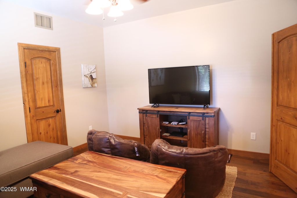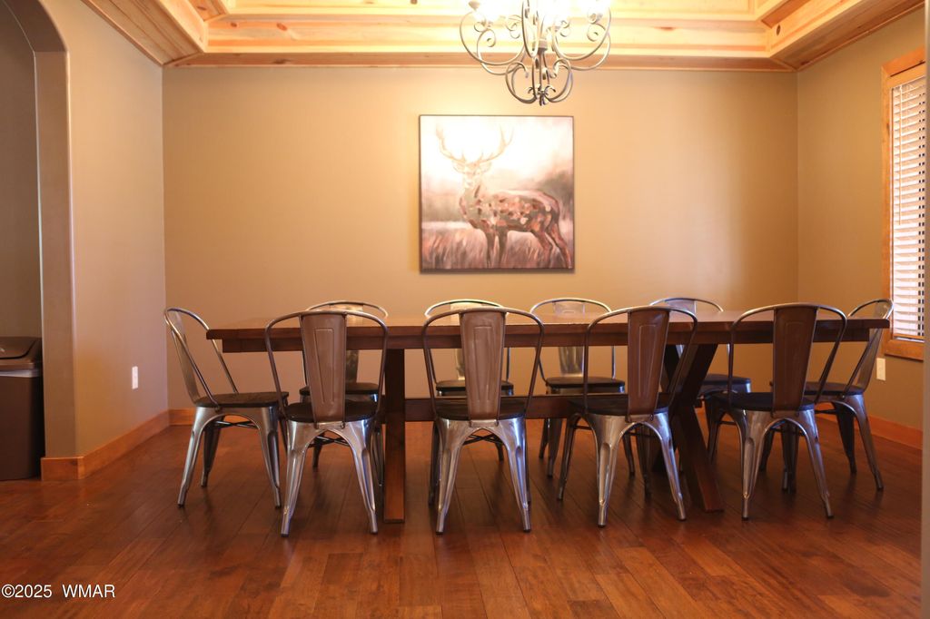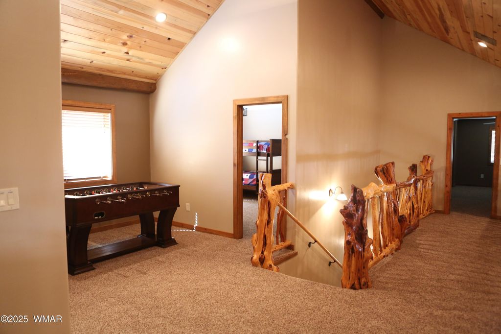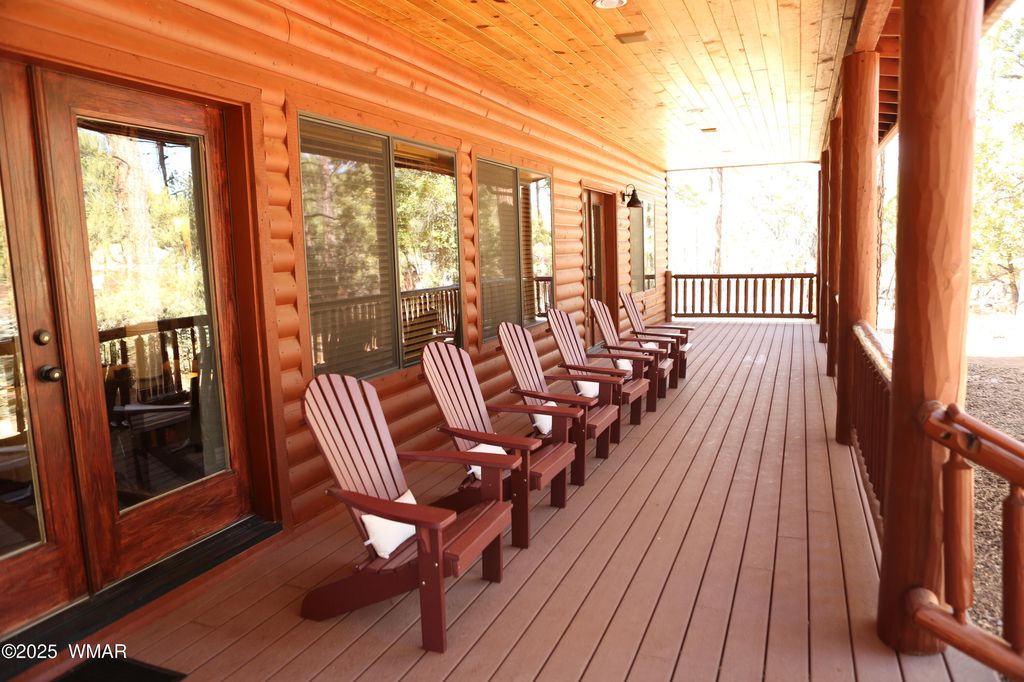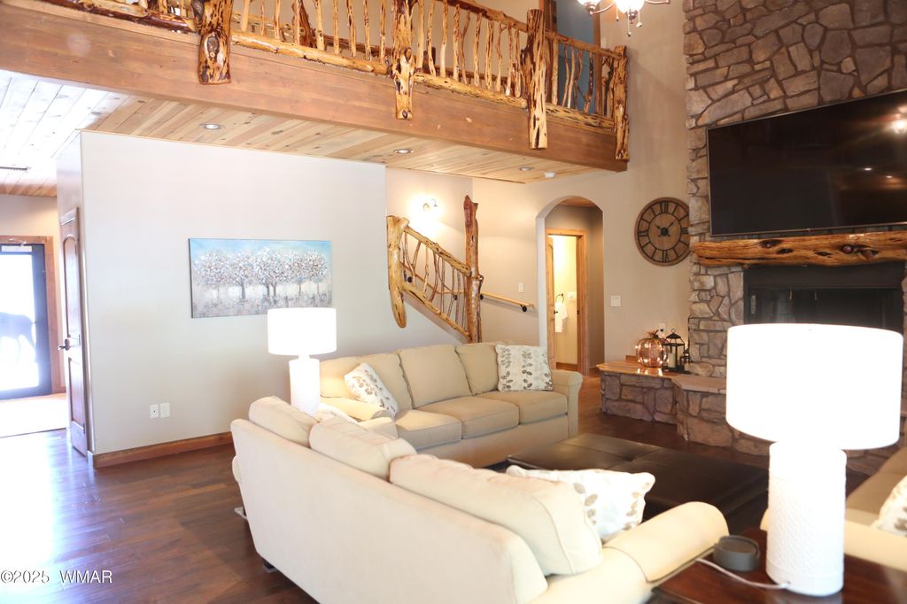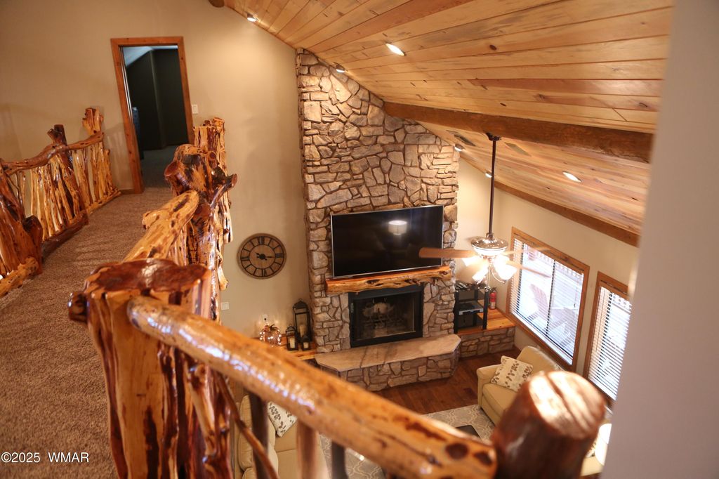 Experience mountain living at its finest in this stunning cabin located in the exclusive gated community of Torreon Golf Club in Show Low, AZ. This beautifully crafted home is located in a quiet cul-de-sac and features soaring wood-beamed ceilings, a floor-to-ceiling stone fireplace, and beautiful forest views. The open floor plan includes a chef's kitchen with granite countertops, stainless steel appliances, and a spacious island with seating for 8. You'll love the rustic charm of the hand crafted railings and wood beamed ceilings. With 5 bedrooms, and 3.5 bathrooms, there's plenty of room for everyone. Enjoy reading in loft, catching a movie in the theater room, or playing in the game room. There's plenty to do outdoors as well where you can relax on the oversized deck or even cozy up to the gas firepit in the backyard. Torreon offers world-class amenities including championship golf, clubhouse dining, fitness center, pools, tennis, and hiking trails. Perfect as a year-round residence, vacation home, or investment property, this cabin delivers the ideal blend of rustic charm and modern luxury in one of Arizona's premier mountain communities.
