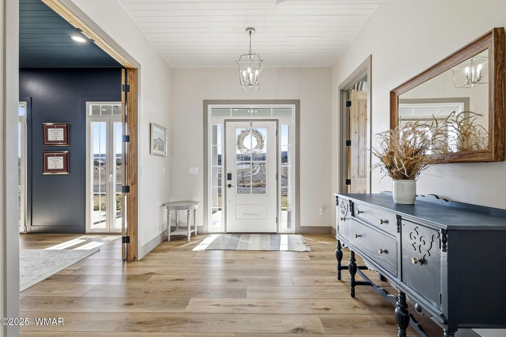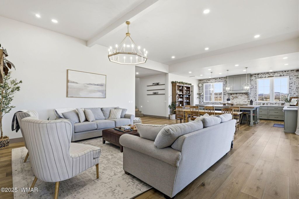 Discover exceptional mountain living in this newer 2023-built, 5,000 sq ft, 7-bedroom, 6.5-bath estate set on 17.25 private acres with exclusive Little Colorado River frontage and first water rights, including 22 hours of flood irrigation. A dedicated horse pasture with direct river access creates a rare combination of luxury and functionality. The home features an impressive all-season sunroom with bi-fold doors, offering seamless indoor/outdoor enjoyment and year-round views. The chef's kitchen is designed for serious culinary use, featuring a 24 sq ft walk-in refrigerator, Italian 48'' range, four ovens, hidden chest freezers, and an ice maker. A true standout of the property is the ultimate bonus room, complete with a home theater, climbing wall, and indoor basketball hoop"”a one-of-a-kind recreation space. The spacious primary suite offers a spa-style bathroom with a large soaking tub, dual-head rain & body-jet shower, and elegant finishes. Additional features include dual laundry rooms with full-size units on both levels and a 1,000 sq ft unfinished apartment over the garage with private exterior access, ideal for future rental income, multigenerational living, or guest space. A rare opportunity to own one of the area's most unique and versatile riverfront properties in the White Mountains.