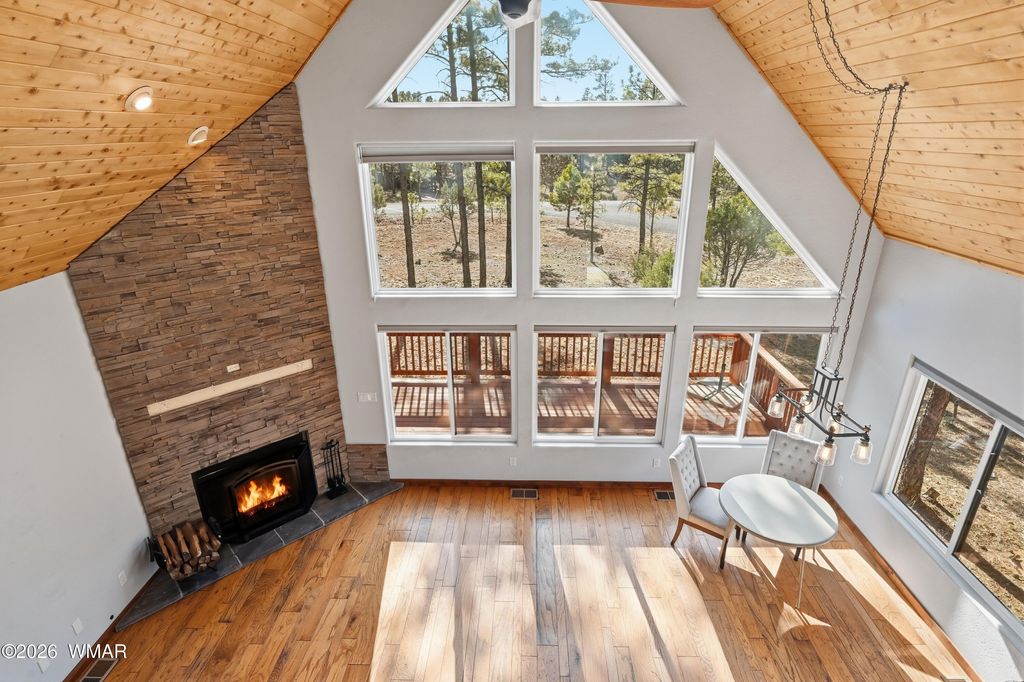 Welcome to your perfect second home oasis or new full time home nestled in the tranquil surroundings of Happy Jack. This inviting single-family residence offers the ideal retreat for anyone seeking comfort, convenience, and the warm relaxation only a thoughtfully designed home can provide. With 3 spacious bedrooms and 2 modern bathrooms, this property beautifully balances intimate coziness with ample room to unwind after a busy week or long journey. Master bedroom is upstairs offering privacy as well as a sitting area and private balcony. Stepping inside, you'll immediately notice how the open layout is enhanced by recessed lighting, creating a bright, uplifting ambiance from dawn until dusk, as well as T&G ceilings giving you a cozy feel. Offering dual pane windows, lower level living room, kitchen & dining room windows recently replaced. Separate laundry room makes chores effortless and out of sight, so you can focus more on enjoying your downtime. Water quality is never a concern, thanks to the included water softener, while the energy-efficient tankless water heater ensures endless hot showers at your convenience. Every element is designed with your comfort in mindwhether it's an extended stay or a spur-of-the-moment getaway, this home effortlessly adapts to your lifestyle. Step outside onto your private deck and let the fresh air remind you why you chose this second home as you watch the wildlife saunter by from the greenbelt close by this lot offers so much room for morning coffee, evening barbecues, or simply catching up with loved ones surrounded by nature. No matter how you envision your escape, this property sets the stage for memorable weekends and relaxing vacations year-round, or your new full time home. Whether you're seeking a restful haven or a space to host friends and family, this home is ready to become your new sanctuary.