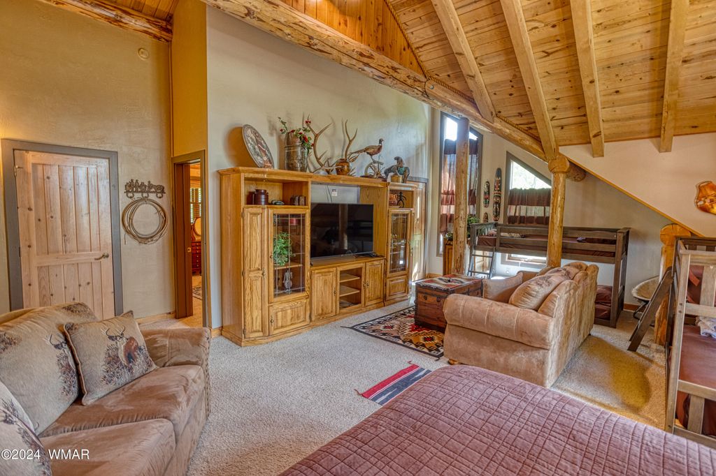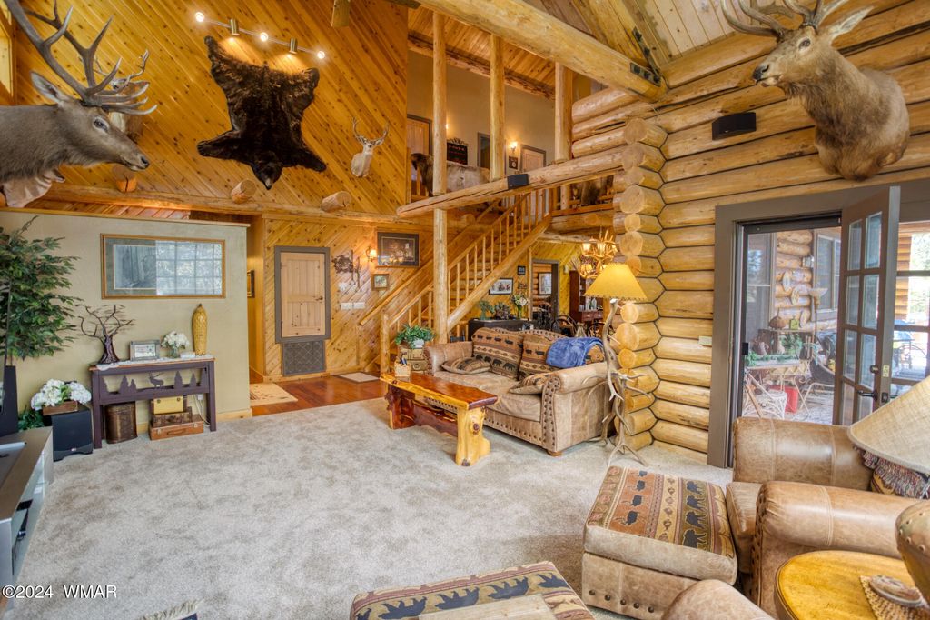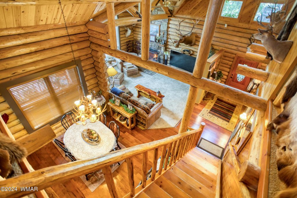 Fabulous Custom Log Home with Amazing Views! This home has it all! Absolutely stellar log construction, high vaulted ceilings, great decks and even a crow's nest deck off the 3rd floor loft. Quiet and secluded neighborhood at the south end of Pinetop Country Club without the HOA. Gated driveway and fully landscaped yard with tons of green ground cover creating a lush garden environment for enjoying the outdoors. Large Ponderosa Pines, Oaks, and Aspen adorn this amazing hillside property. Large double-door oversized garage for all your toys! Even an amazing game room is included! When you step into this home, you are immediately in awe, where design and craftsmanship are prominently displayed in every room! Truly a home like no other for you and your future generations to enjoy