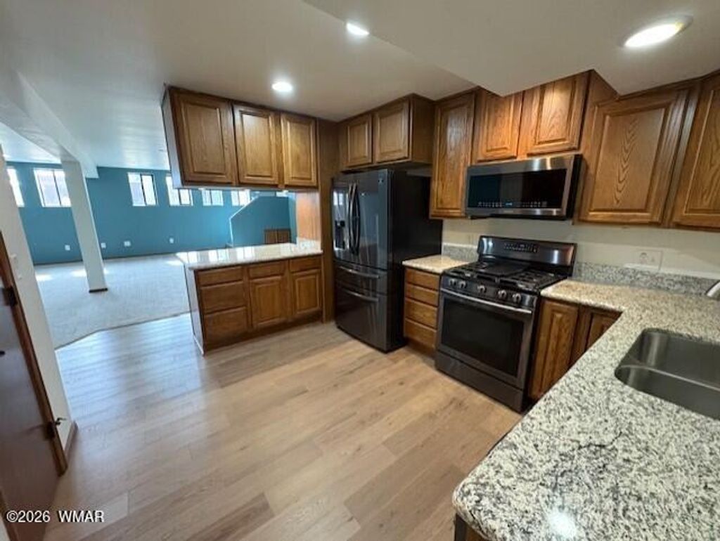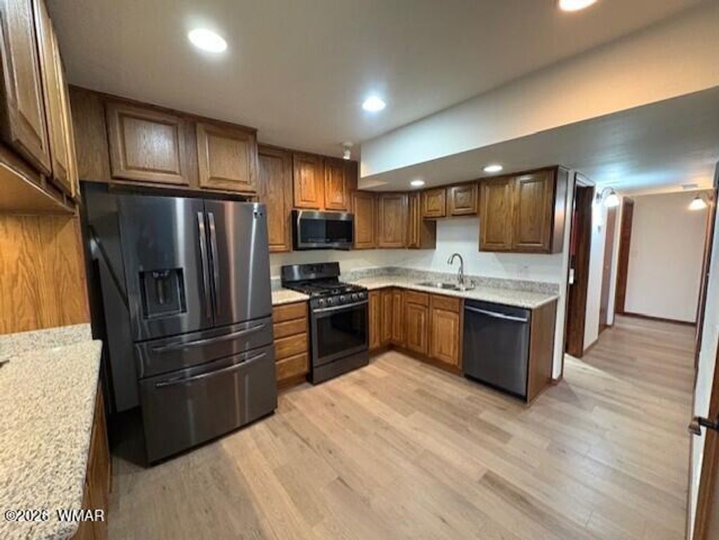 Absolutely incredible find in the heart of Show Low Arizona. Nine, bedroom, two kitchens, three living areas, and four bathrooms all under one roof sitting on .47 of an acre. This three story home is a gigantic 5,026 square feet and can accommodate all your family and friends for a grand time in the mountains. The updated downstairs can also be locked off for privacy. Each of the three floors features three bedrooms with a full kitchen downstairs and a full kitchen on main level. Upstairs features a great room/loft, and two bedrooms that are generously oversized. The main level features the primary suite and more than enough room to entertain, as well a newer composite deck. Enjoy a private, large back yard that has access to a shed, storage room and countless outdoor activities! See now