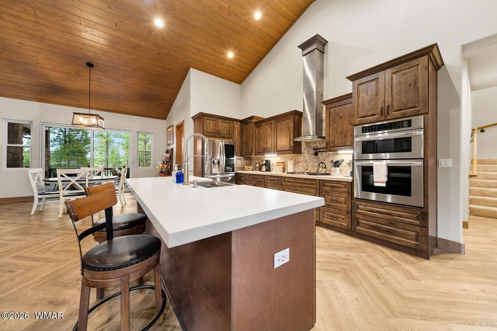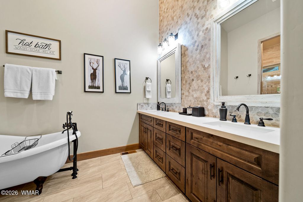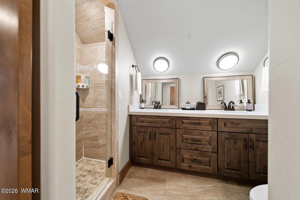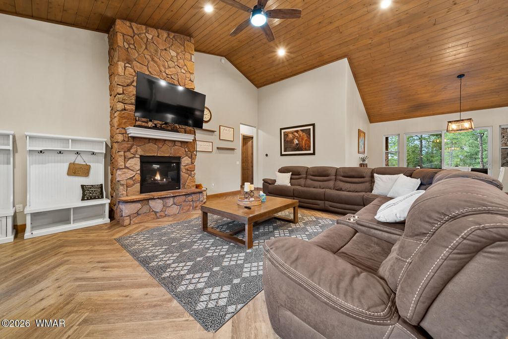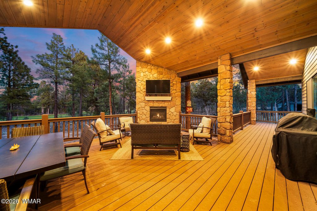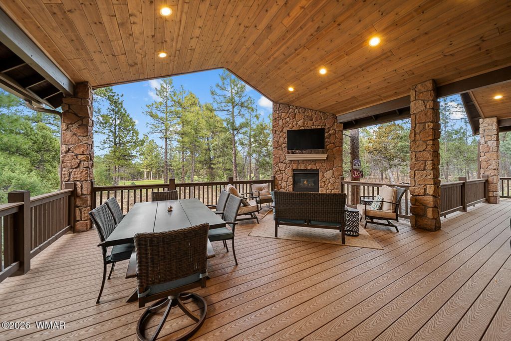 Set against the stunning #2 Tower Course in Torreon Golf Club, this exceptional mountain retreat delivers luxury, space, and unforgettable views. The open-concept design features an upgraded kitchen that flows seamlessly into the dining and living areas, creating the perfect setting for entertaining. The elegant master suite offers dual closets, a soaking tub, full shower, double vanity, and direct access to the covered deck and dog run. Bedrooms two and three share a Jack and Jill bath, while a fourth bedroom has convenient hall access. Above the two-car garage, a private guest suite includes a full bath, built-ins, and its own HVAC. A dedicated office with custom desk adds functionality. The covered back deck with gas fireplace creates a peaceful, must-see retreat.